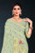 Pastel Green Handloom Cotton Saree with Tribal Motif Border and Green Tassels
