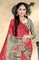 Rust Red & Olive Green Fancy Jorjat Saree with Deer Motif Pallu